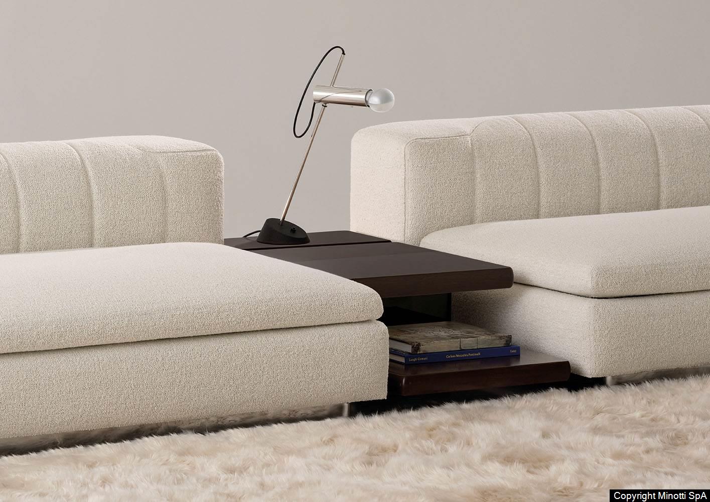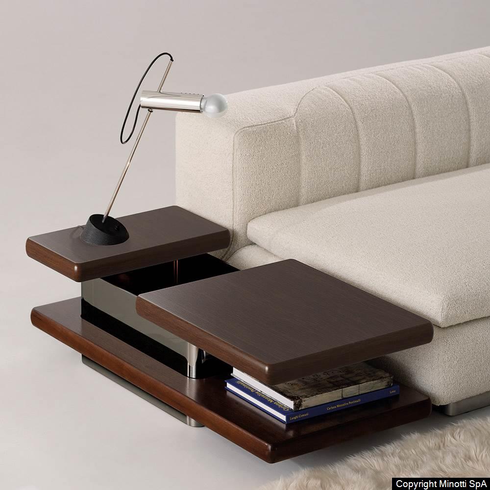 Stage边几有长方形、正方形、梯形可供选择,呈现出简约洗练的几何美感,既可作为座椅之间的实用置物台面,亦可用作沙发边几。 Hannes Peer设计的Stage边几采用金属支撑结构,提供两种金属饰面选项,两个层板采用圆角边缘设计,饰面可选择木制或亮光漆面。长方形和正方形版本的边几可在上方选配滑动式台面,下方设有储物格,便于收纳物品。 边几线条优雅,灵感源自70年代末米兰设计风格的造型与色彩,造型富有雕塑感,功能灵活多样,在精确度与温馨感之间取得恰到好处的平衡,可以完美融入Riley沙发座椅两种不同座深的空间布局。