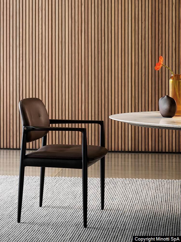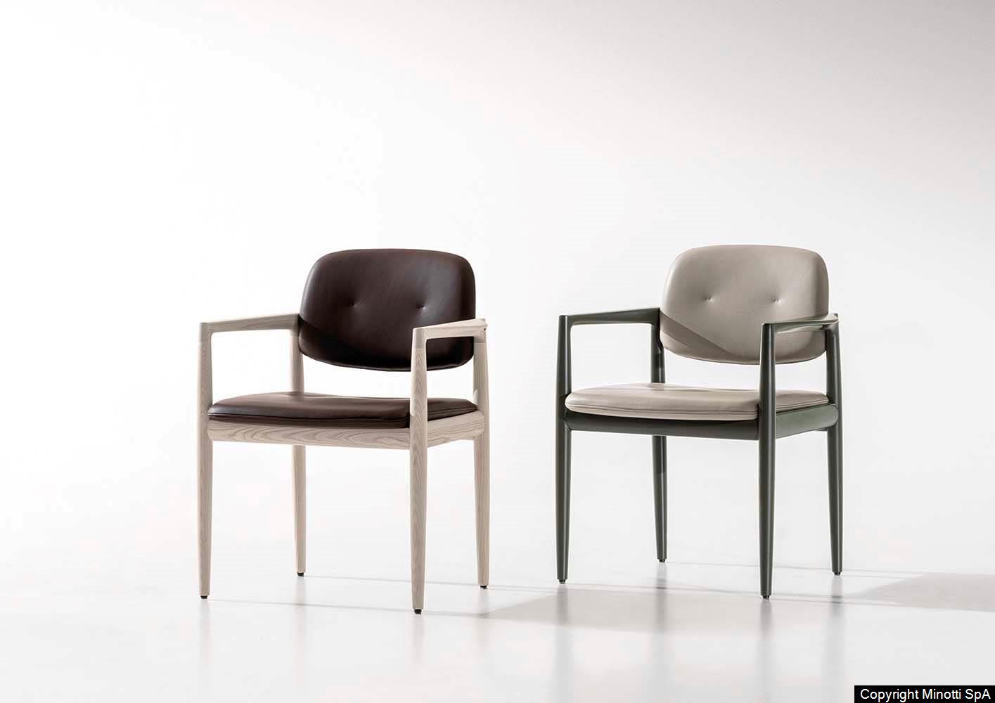 Yoko是一个轻盈优雅的座椅设计项目,其名称充满日式韵味,糅合斯堪的纳维亚风格的线条,呈现出两种文化气质相交融的美学底蕴。餐椅线条流畅纤巧,采用精妙的接合方式,有扶手和无扶手的版本皆散发出非凡格调。 有扶手的版本,木制结构的支腿和扶手的接合处前后都有一个标记;无扶手的版本,支腿上方采用椭圆弧面设计,木材的精妙运用方式让这些结构特点化身为独特的装饰元素。 北欧与日本在木作工艺方面积淀深厚,在该项目中,杰出的木工技艺邂逅意大利制造的深厚技术实力,将科技、优雅与舒适融为一体,为餐厅空间打造非比寻常的体验。