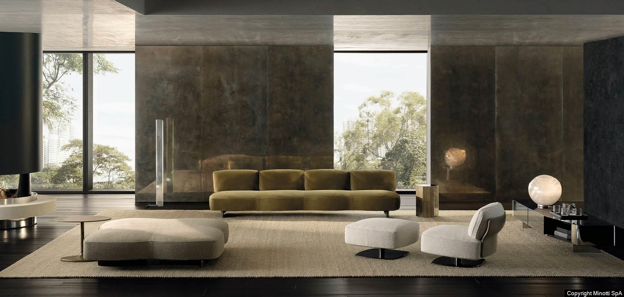 “Saki”在日语中意为“花朵盛开”,Nendo以花朵绽放的瞬间为灵感,推出沙发座椅系列,靠背和扶手配以造型优雅的背板,仿若花瓣般轻盈柔美。座椅提供多种漆面色调选项,亦可搭配织物或皮革覆面,打造丰富多样的组合方案,为家具注入精致而富有个性的美学气质。 Saki沙发座椅系列秉持模块化组合的设计理念,两座、三座与四座沙发均提供两种不同座深选择。此外,该系列还推出有扶手与无扶手的单人座椅、长凳以及富有创意的岛型模块,轻松打造灵活多元的空间布局。 该系列采用宽大座面,勾勒出流畅的弧形轮廓,边缘饰以精致镶边,呈现出优雅的整体造型。设计师佐藤大旨在诠释花蕾的意象,正如他所言:“在软垫上方的转角处精心设计一条切缝,巧妙营造出若即若离的平衡感,同时实现靠背与扶手之间的自然过渡。”轻盈流畅的线条转化为温柔环抱的舒适体验,精密的内部结构与柔软的座垫完美结合,充分体现出对人体工学的细致考量与关注。 方形岛式沙发的表面采用中央交叉缝线设计,散发出温馨宜人的气息。宽大的座面既适合多人围坐,也便于躺卧休憩,轻松满足休闲区域、家居空间和酒店环境的多样化需求。 沙发展现出非凡的剪裁工艺,造型流畅的铝制弧形支脚为其注入生动的美感,这一精致的设计元素也沿用在该系列的所有其他产品上。扶手椅亦可选配圆角方形基座的地面支撑结构,并且有固定式和旋转式可供选择。
