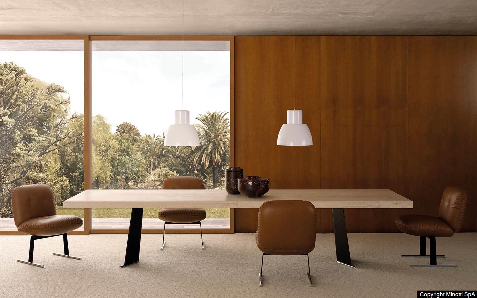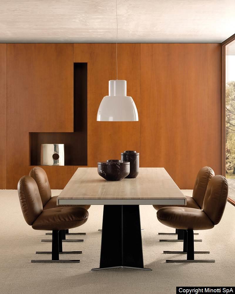 Giampiero Tagliaferri设计的Libra扶手椅,灵感源自70年代的美学风格,扶手椅由座垫、靠背和头枕叠合而成,呈现出柔和的造型,覆面材质可选用皮革或织物,中央点缝工艺精致考究,不仅增强了三维立体感,也彰显出细腻的匠心工艺。 这款作品旨在演绎造型之间的平衡之美,其名称“Libra”源自拉丁语,意为“天秤”,恰如其分地诠释出作品的设计理念。围手椅、扶手椅、椅凳、餐椅在软垫边缘饰以精致的褶裥元素,搭配利落的镶边设计,巧妙平衡覆面的柔美褶纹,展现出精湛的手工艺。别具一格的金属基座由管状金属支脚和弧形金属板构成,坚实地承托起座椅。