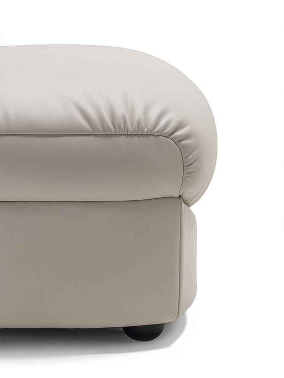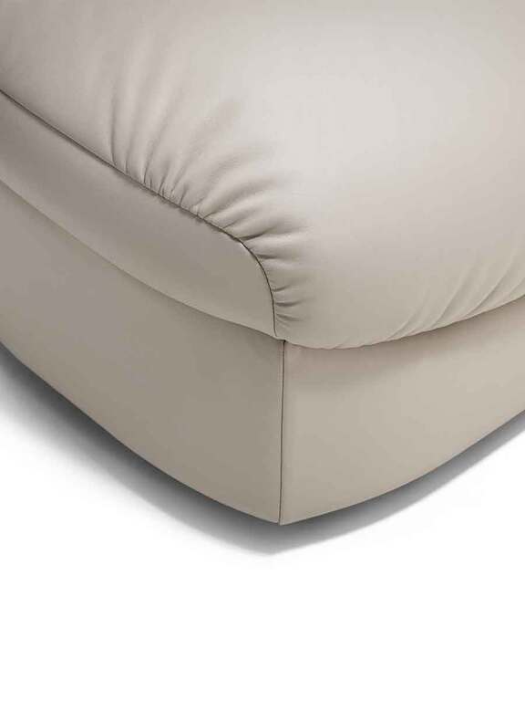 Parka 軟墊沙發凳延續了整個系列標志性的柔和曲綫和舒適設計。將其放置在沙發前方,可擴展座椅空間,打造更加舒適的使用體驗。特別適合與三人沙發搭配,或擺放在圓潤造型的單人扶手椅前,與其寬度相得益彰。套面可以完全采用Pelle Frau®産品目錄中的各類皮革,也可以采用皮革+布藝的組合。縫綫爲同色系的顔色。