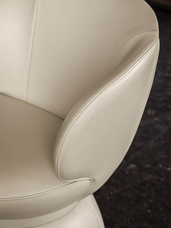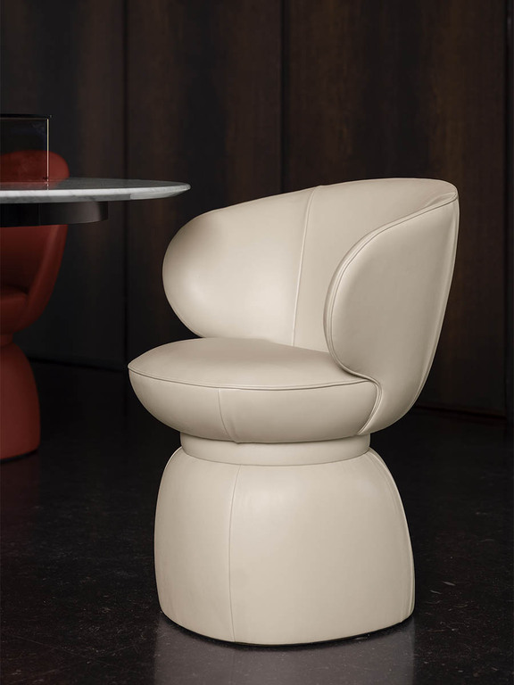 采用樺木和楊木多層板框架結構,幷填充牛皮紙蜂窩板襯墊。靠背結構則結合了 Polimex®材質與楊木多層板。座椅填充聚氨酯泡沫與聚酯棉絮。Leplì 扶手椅提供多種皮革與織物搭配方案。底座固定款采用黑色防刮 MDF 材質;底座旋轉款配備自動回位旋轉機構,可360° 旋轉幷自動回歸初始位置;滾輪款則在底部嵌入了 5 個萬向輪。