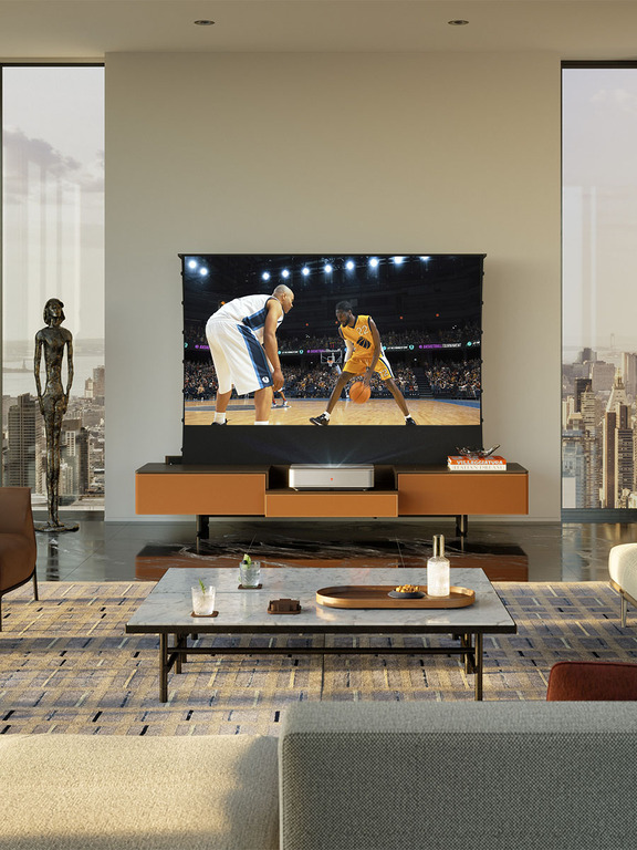 Fidelio 多媒體櫃是一款配有整合螢幕的家具,旨在提供完美的家庭劇院體驗。承重結構採用實心白蠟木與貼白蠟木飾面的樺木夾板製成。內部結構為超淺色楓木。櫃體上方隱藏著一個可垂直升降的電動投影幕。在具開放式隔間的頂部下方,左右兩側分別設有兩個抽屜,夾著中央隔間。中央隔間包含一個可拉出的抽屜,專為放置高畫質的 Leica Cine 1 100吋智慧雷射電視而設計。雖然也可搭配其他投影機使用,但與 Leica 機型的完美整合正是其獨特之處。Leica Cine 1 配備超短焦鏡頭與三重 RGB 雷射技術,能在100吋螢幕上呈現 4K 解析度影像,色彩表現卓越,搭配 Dolby Atmos® 音效系統,超越新世代電視的標準。當投影幕完全升起時,櫃體尺寸為寬280公分、高205公分、深73公分。 產品僅能分開購買:配有整合螢幕的 Fidelio 多媒體櫃可於全球部分指定 Poltrona Frau 門市購買,而Leica Cine 1 100吋智慧雷射電視則由 Leica 於特定地區直接銷售。